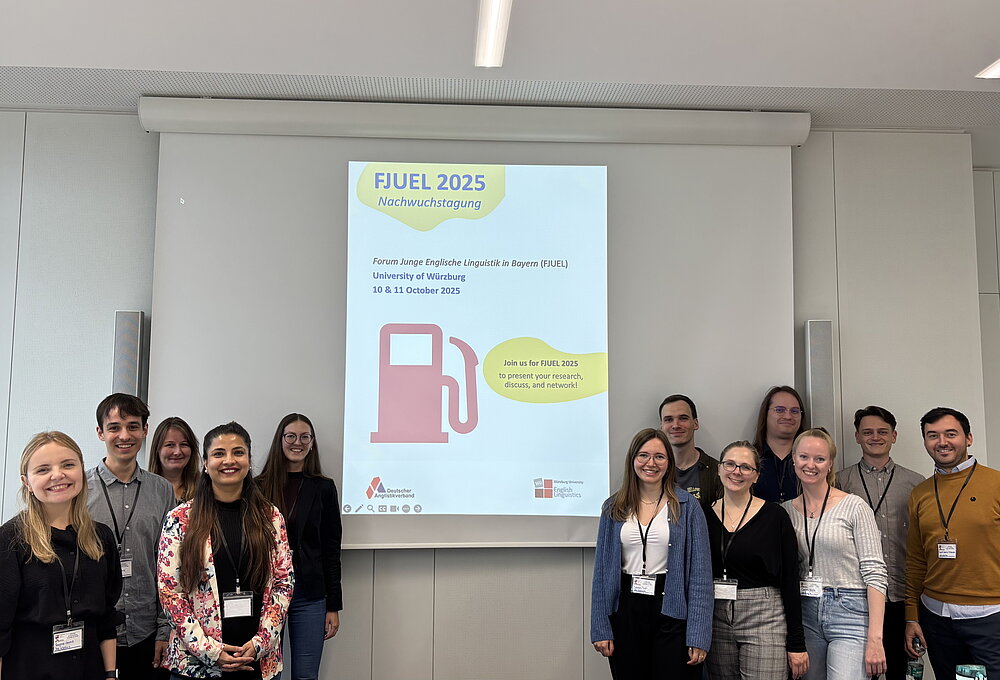 On October 10 and 11, 2025, the English Linguistics department welcomed students, PhD candidates, and postdocs of Bavarian universities to participate in FJUEL 13 (Forum Junge Englische Linguistik in Bayern). On Friday, participants presented an overall of eight different talks – ranging from corpus studies to applied research on language learning, and the use of AI tools. Coffee breaks offered the opportunity to chat and network, and included a small poster session. The day ended with a well-deserved pizza group dinner.