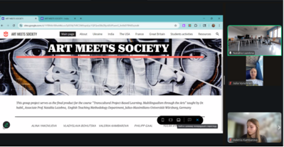 Designed for future foreign language teachers, the course blended artistic expression with intercultural collaboration, fostering global competence and creative engagement in a hybrid learning environment. The students partner Universities from DonNU and ZNPU participated in the course  and co-created multilingual digital projects together with the students from the JMU. This international collaboration facilitated shared responsibility and creative synergy.