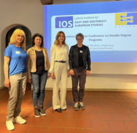 On 4th and 5th of May 2023, the participants of cooperation gave their talk on “Multimodal hybrid interaction of EFL students from Germany and Ukraine in the meta-framework of digital humanities” at the Ukrainian-Bavarian Conference on Double Degree Programs in Regensburg, organized by the Bavarian Academic Center for Central, Eastern and Southeastern Europe (BAYHOST) and the Leibniz-Institute for East and Southeast European Studies (IOS), PD Dr. Nataliia Lazebna, Prof. Dr. Gesine Drews-Sylla, Dr. Elena Dieser (JMU), and Dr. Kateryna Lut (ZPNU) represented their joint efforts to implement cooperation between the departments of TEFL and Slavic Studies (JMU) and Theory and Practice of Translation (ZPNU). Germanic and Slavic languages were presented in a harmonious symbiosis during the hybrid formats, live and online sessions with students from Germany and Ukraine. Communicative patterns, linguistic agendas, and methodological issues were the central anchor points that consolidated the interaction between students and teachers during the abovementioned events and were lively discussed by the conference participants. A wide range of perspectives for further development of the abovementioned cooperation between German and Ukrainian universities will contribute a lot in the future to a multifaceted academic cooperation, to the integration of teaching and learning environments, and to the individual and professional development of the parties involved.